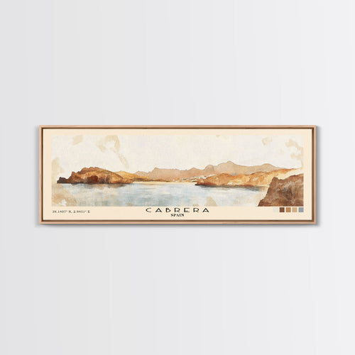 Cabrera, Spain Watercolor Beach Print, Vacation Gift, Spain Wall Art, Framed Canvas Print, Framed Beach Painting