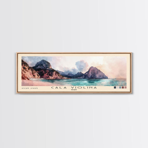 Cala Violina, Italy Panoramic Beach Print, Vacation Gift, Italy Wall Art, Framed Canvas Print, Framed Beach Painting