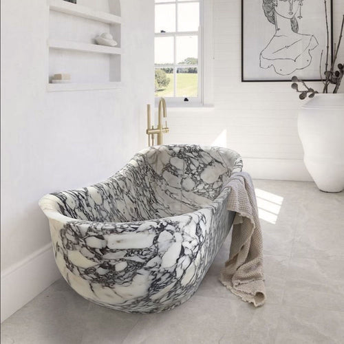 Calacatta Viola Bathtub Hand-carved from Solid Marble Block (W)34" (L)70" (H)26"
