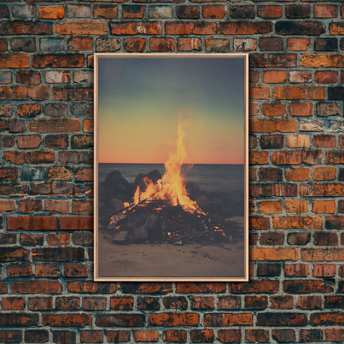 • Campfire On The Beach, Framed Canvas Print, Lakehouse Wall Art, Ocean Decor, Ocean Wall Art, Home & Office Decoration