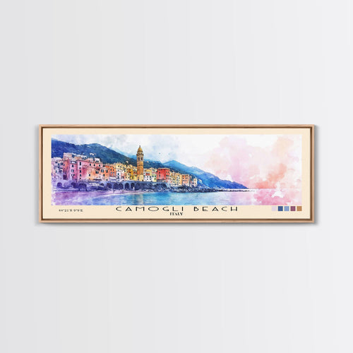 • Camogli Beach, Italy Panoramic Beach Print, Vacation Gift, Italy Wall Art, Beach Painting, Beach Decor, Beach Painting