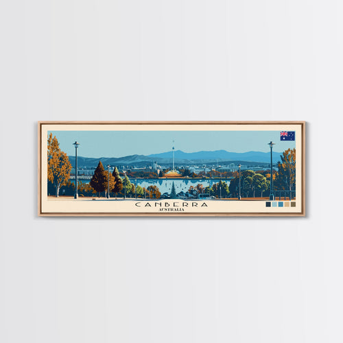 Canberra, Australia Panoramic Travel Poster Canvas Print, Canberra, Australia Painting, Australia Art, Canberra Travel Art, Guest Room Painting