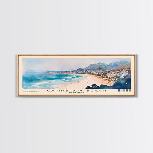 Camps Bay Beach, South Africa Panoramic Beach Print, Vacation Gift, South Africa Wall Art, Framed Canvas Print, Framed Beach Painting