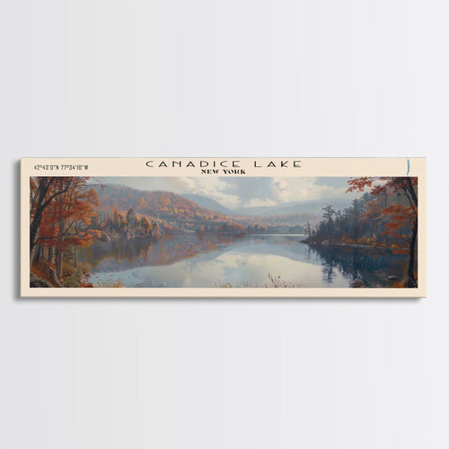 Canadice Lake New York Framed Canvas Print, Lake House Decor, Panoramic Wall Art, Travel Poster, Vintage Lake Painting, Home Decor