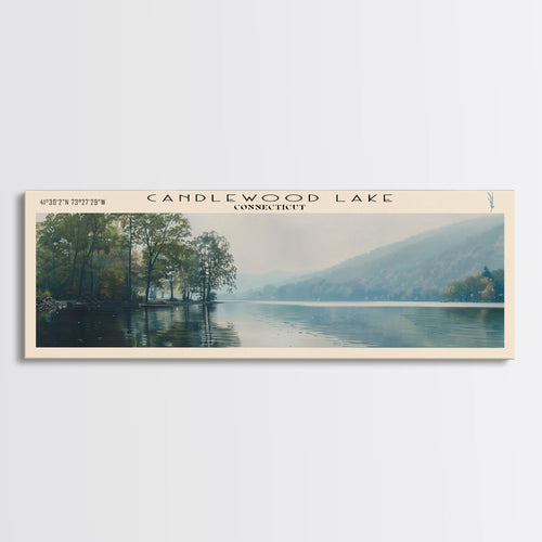 Candlewood Lake Connecticut Framed Canvas Print, Lake House Decor, Panoramic Wall Art, Travel Poster, Vintage Lake Painting, Home Decor