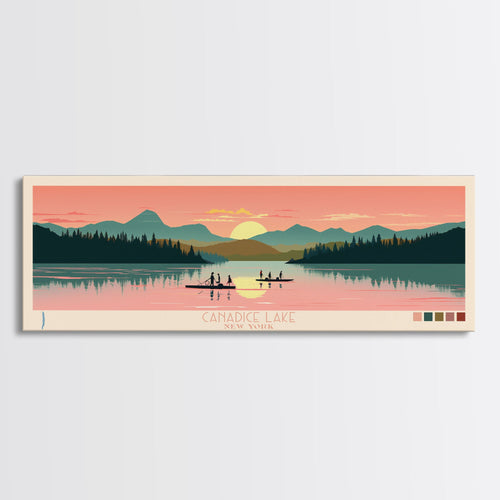 Canadice Lake New York Framed Canvas Print, Pop Art Panoramic Travel Poster, Midcentury Modern, Wall Art, Scenic Nature Painting, Bedroom Decor