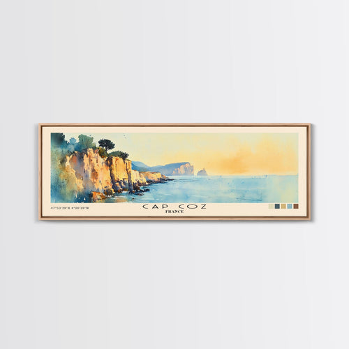 Cap Coz, France Panoramic Print, Vacation Gift, France Wall Art, Beach Painting, Beach Decor, Large Wall Art, Wood Frame Art