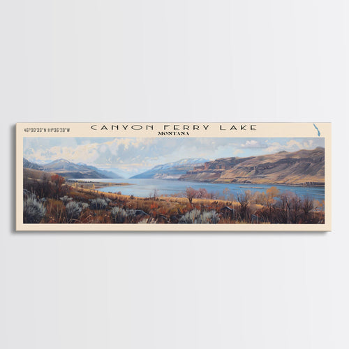 Canyon Ferry Lake Montana Framed Canvas Print, Lake House Art, Panoramic Wall Art, Travel Poster, Rustic Lake Painting, Nature Art