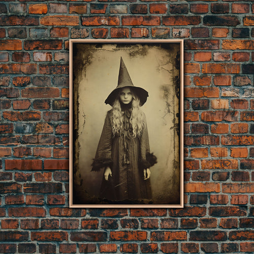 A Victorian Witch, Spooky Victorian Witch Photography Daguerreotype, Tin Type, Framed Canvas Print, Victorian Witches, Halloween Decor