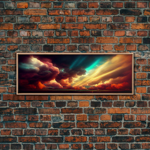 A stormy cloudy sky at dusk, synthwave, canvas print, Big Texas Skies, water color, storm art, extra large panoramic landscape wall decor