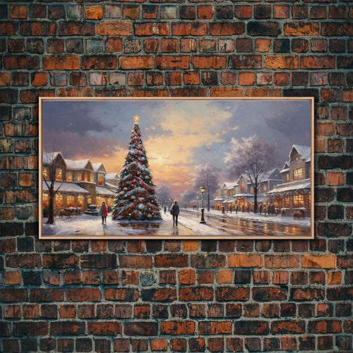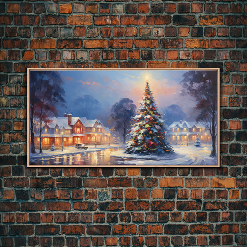 Cute Christmas Decor, Christmas Wall Art, Vintage Winter Wonderland Christmas Village Oil Painting Canvas Print, Framed Wall Art
