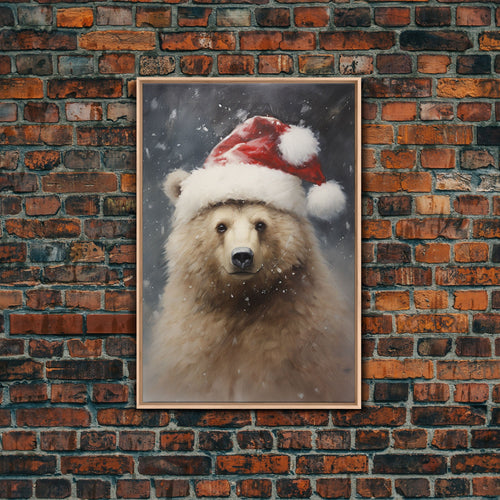 Cute Christmas Bear In A Santa Hat, Framed Canvas Print, Christmas Art, Christmas Decor, Christmas Art Print, Christmas Wall Art