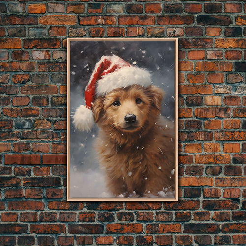 Cute Christmas Golden Retriever In A Santa Hat, Christmas Art, Christmas Decor, Christmas Wall Art, Christmas Painting, Vintage Christmas