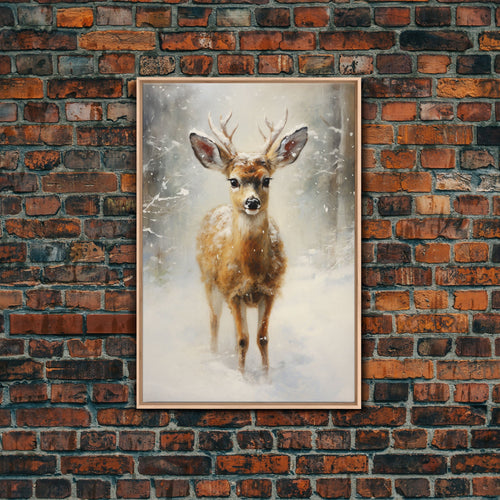 Cute Buck Wearing A Santa Hat, Christmas Decor, Woodland Animals, Christmas Wall Art, Winter Decor, Holiday Decor, Seasonal Decor, Cute Deer