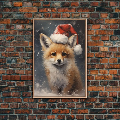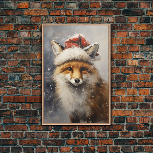 Cute Christmas Fox In A Santa Hat, Christmas Art, Christmas Decor, Christmas Wall Art, Farmhouse Christmas, Vintage Christmas, Fox Art