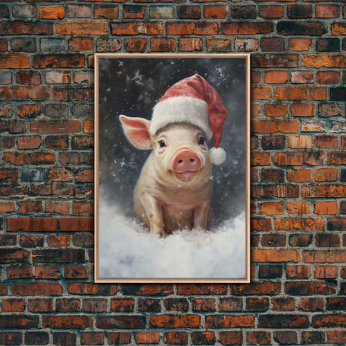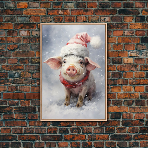 Cute Christmas Pig In A Santa Hat, Christmas Art, Christmas Decor, Christmas Wall Art, Farmhouse Christmas, Vintage Christmas, Pig Print