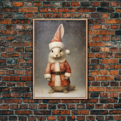 Cute Christmas Bunny Rabbit In A Santa Hat, Christmas Art, Christmas Decor, Christmas Wall Art, Farmhouse Christmas, Vintage Christmas