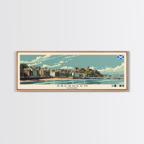 Aberdeen, Scotland Panoramic Travel Poster Canvas Print, Aberdeen, Scotland Painting, Scotland Art, Aberdeen Panoramic Travel Art, Travel Painting