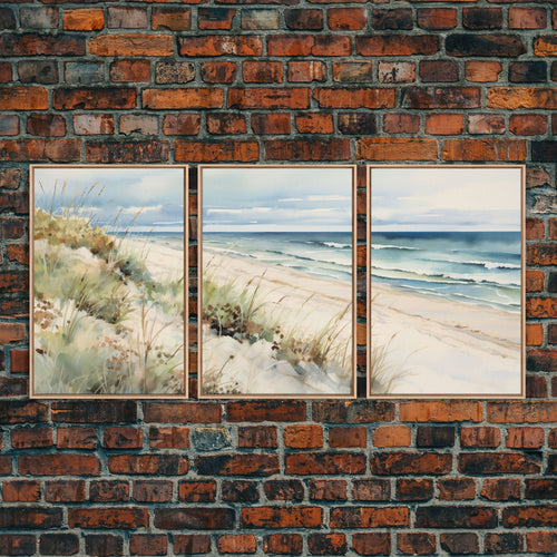 Abstract Coastal Painting Canvas Print Wall Art Vintage Beach Print Girly Apartment Decor Seascape Print, 3 Piece Wall Art, Boho Decor