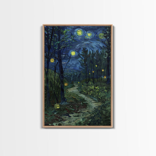 Abstract Colorful Train at Night Framed Canvas Print Halloween Wall Art, Spooky Train Artwork Haunted Transportation Decor, Ghostly Home Art