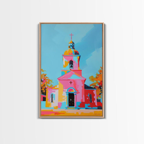 Abstract Church Painting with Bold Colors - Framed Canvas Print, Modern Religious Wall Art, Vibrant Church Decor for Home and Living Room