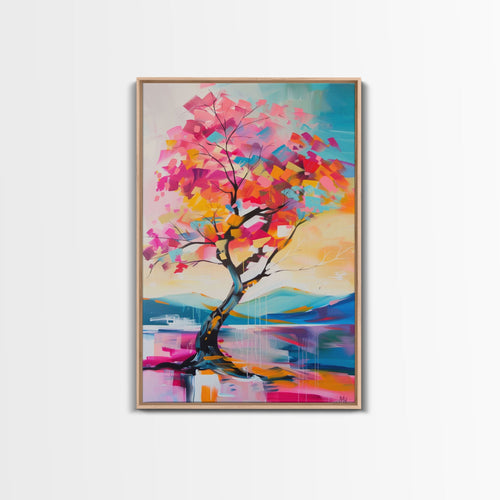 Abstract Colorful Tree - Framed Canvas Print, Vibrant Wall Art, Living Room Decor, Modern Nature Artwork, Colorful Tree Art, Bedroom Decor