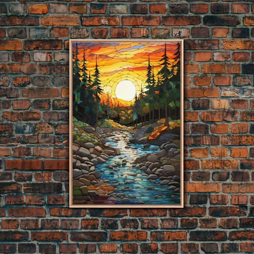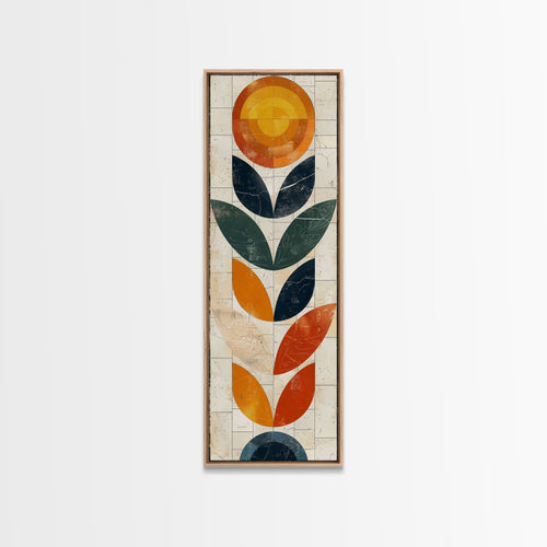 Abstract Geometric Stained Glass Design in Vibrant Colors - Framed Canvas Print, Midcentury Modern Art, Skinny Art, Tall Art, Living Room Wall Decor