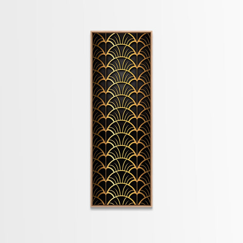 Abstract Gold Geometric Pattern on Black Background - Framed Canvas Print, Art Deco Style, Skinny Art, Tall Art, Midcentury Modern Art, Living Room Wall Decor