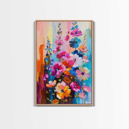 Abstract Flower Bloom Framed Canvas Print - Colorful Wall Art, Living Room Decor, Modern Floral Art for Bedroom, Home Decoration