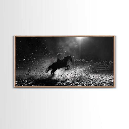 Action-Packed Rodeo Scene with Bucking Horse, Beautiful Framed Canvas Print, Western Living Room Art, Rustic Bedroom Decor, Wall Art