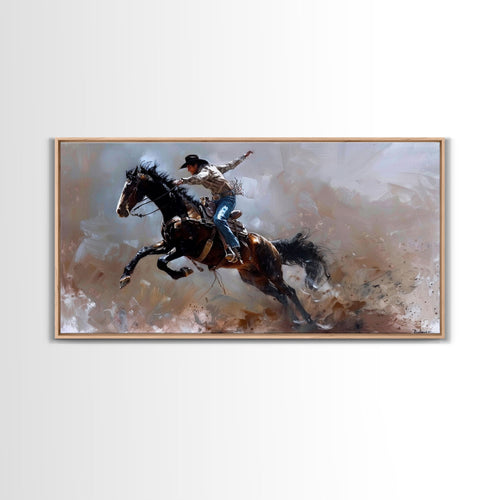 Action-Packed Cowboy on Horseback - Framed Canvas Print, Western Wall Art, Rustic Decor, Living Room and Bedroom Art Print