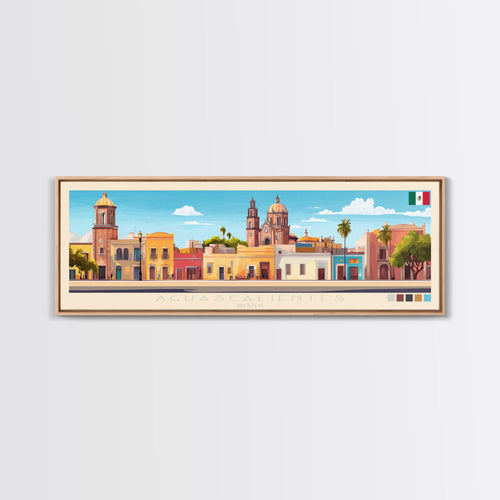Aguascalientes, Mexico Panoramic Travel Poster Canvas Print, Aguascalientes, Mexico Painting, Mexico Art, Aguascalientes Travel Art, Guest Room Painting
