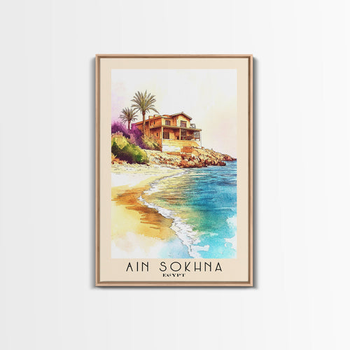 Ain Sokhna, Egypt Watercolor Print, Vacation Gift, Egypt Wall Art, Beach Painting, Beach Decor, Large Wall Art, Wood Frame Art
