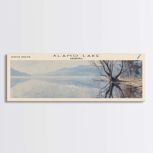Alamo Lake Arizona Framed Canvas Print, Panoramic Travel Poster, Midcentury Modern Wall Art, Pop Art, Scenic Bedroom Art