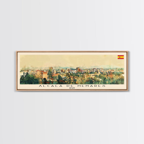 Alcalá Spain Travel Art, City Art, Framed Canvas Print or Metal Wall Art, Europe Travel Poster, Panoramic Wall Art, Extra Wide Wall Art