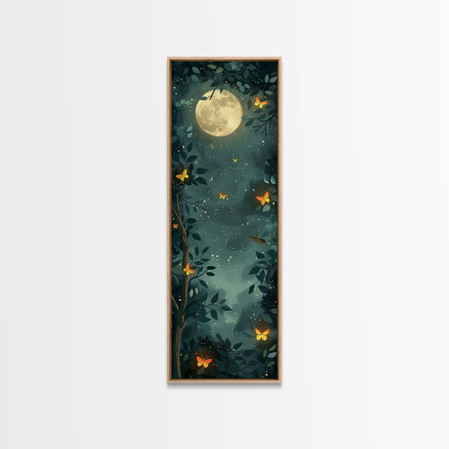 Full Moon And Butterflies In A Night Forest Japanese Style Framed Canvas Print, Wall Art Ready To Hang For Your Home