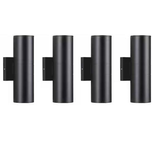 Aluminum 12- Watt Equivalent Integrated LED Black Cylinder Wall Sconce Indoor/Outdoor Wall Pack Light, 2700K (4-Pack