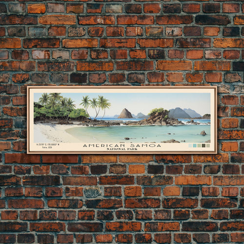 • American Samoa National Park Panoramic Travel Art, National Park Print, Minimalist Travel Art, Subdued Watercolor Painting Panoramic