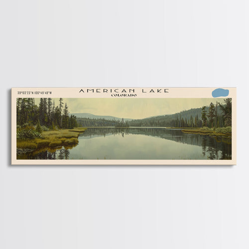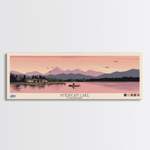 • American Lake Colorado Framed Canvas Print, Panoramic Travel Poster, Pop Art, Midcentury Modern Wall Art, Scenic Bedroom Art
