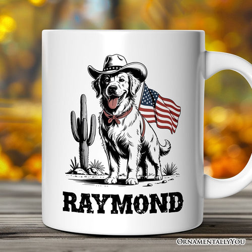 • American Cowboy Dog Personalized Mug, Western 4th of July Gift with Custom Name
