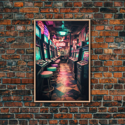 An Abandoned Game Room, Framed Canvas Print, Vaporwave Photography Fine Art Print, Aesthetic Decor, Colorful Art, Arcade Room Art