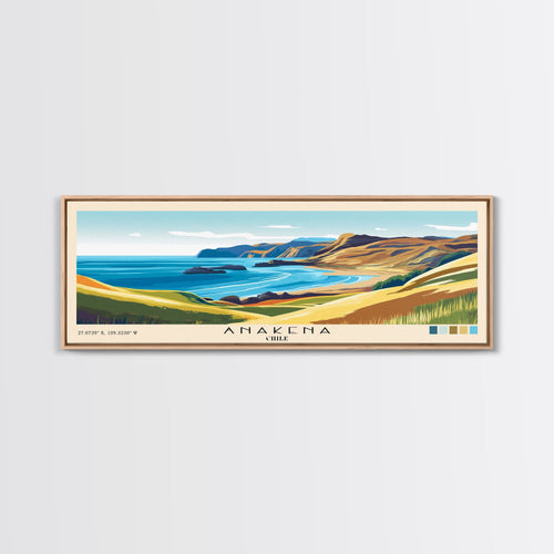 Anakena, Chile Panoramic Print, Vacation Gift, Chile Wall Art, Beach Painting, Beach Decor, Beach Or Lakehouse Art