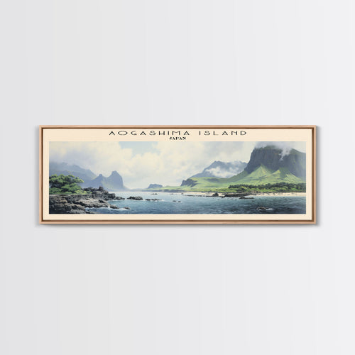 Aogashima Island Travel Art Framed Canvas Print, Wall Decor, Home Decor, Travel Poster, Vintage Wall Art, Watercolor Painting