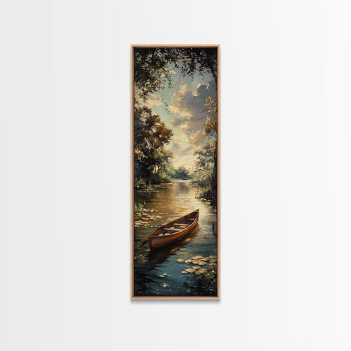 Antique Canoe Framed Canvas Print, lake House Decor, Lake Life Wall Art, Tall Wall Art For Small Spaces
