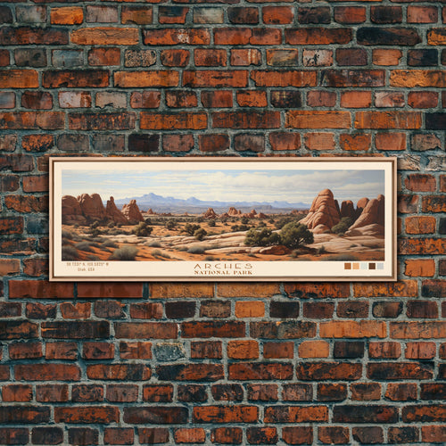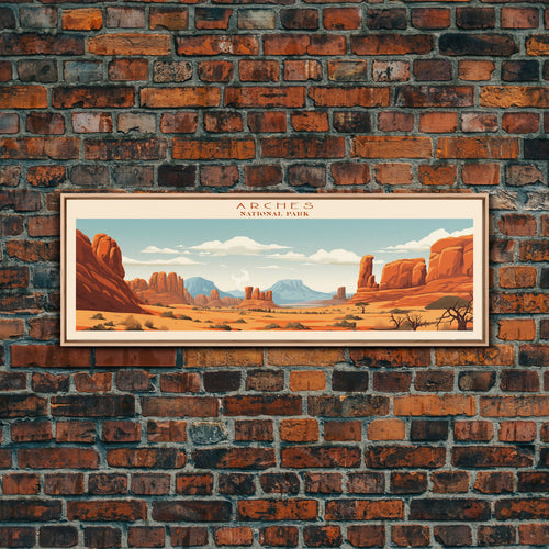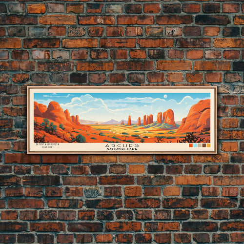 Arches National Park, Framed Wall Art Canvas Print, Travel Poster, Travel Art, Roadtrip Decor, Cool Wall Art, Retro State Park Art