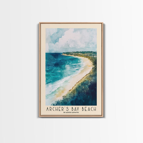 Archer’s Bay Beach, Barbados Panoramic Beach Print, Vacation Gift, Barbados Wall Art, Framed Canvas Print, Framed Beach Painting