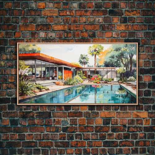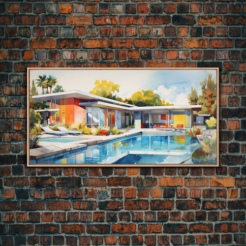 Architecture Art, Midcentury Modern, House Portrait, Watercolor House, Panoramic Art, Wall Art, Canvas Art, Landscape Art, Realtor Gift
