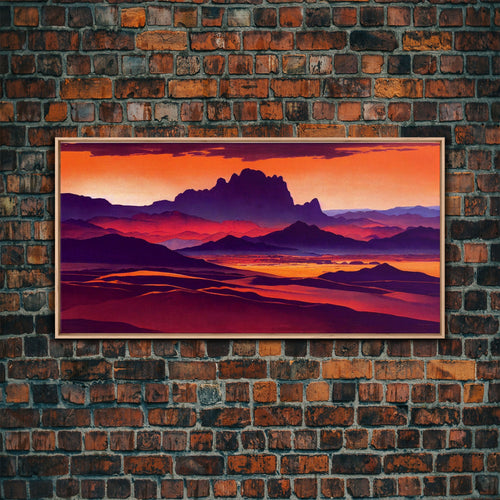 • Arizona Desert Landscape at Sunset, Vaporwave Style Landscape, Cool Office Art, Ready To Hang Framed Canvas Print, Oversize Wall Art