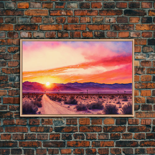 • Arizona Desert at Sunset, Dirt Road, Framed Canvas Print, Colorful Wall Art, Sofa Art
