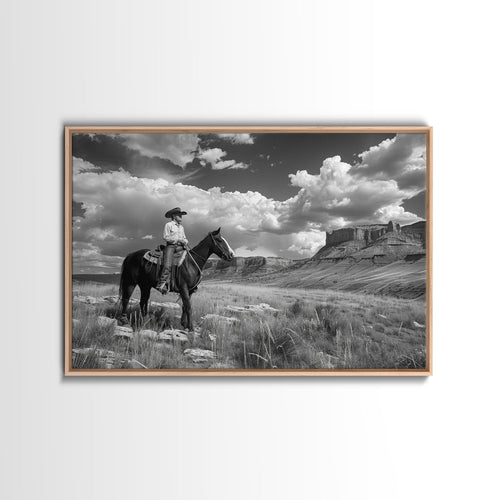 • Arizona Cowboy Black and White Photography Print, Framed Canvas Print or Metal Art, Western Decor, Country Art, Living Room Art